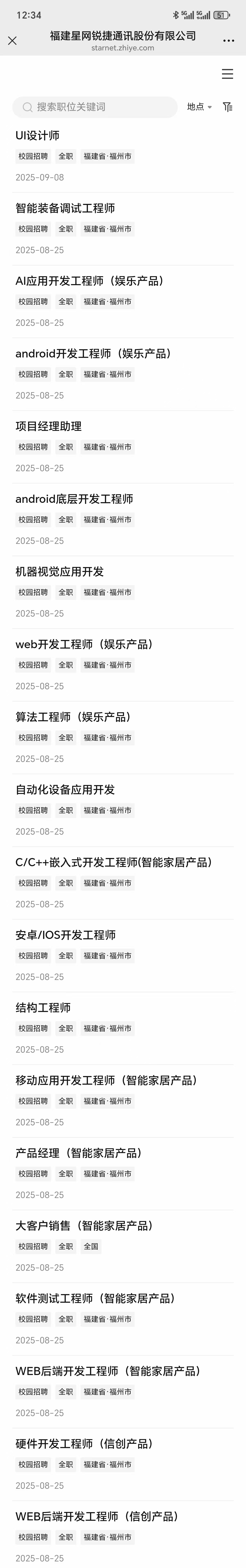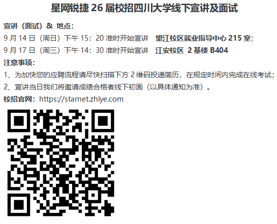 9.14 15:20 就业指导中心215室 星网锐捷校园招聘