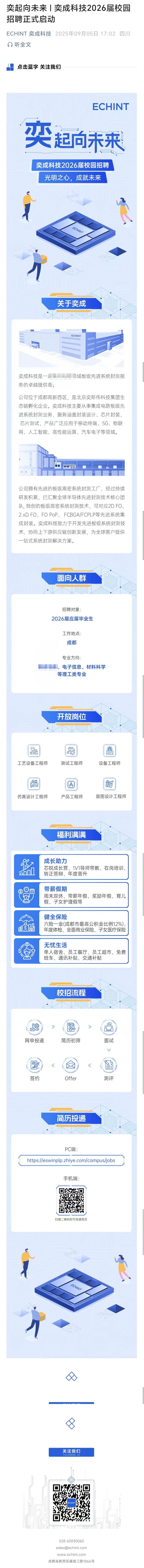 成都奕成科技2026届校园宣讲会正式启动!我们诚挚邀请你来到现场,与HR面对面,深入了解公司发展、福利体系、