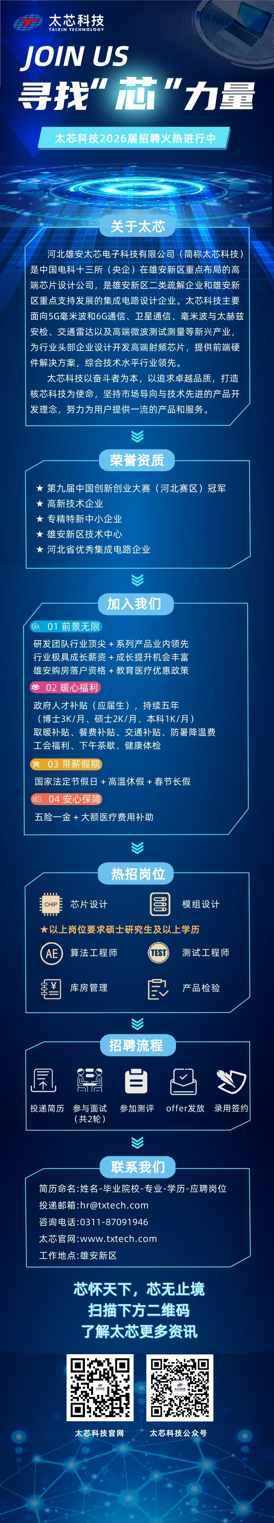 太芯科技主要面向5G毫米波和6G通信、卫星通信、毫米波与太赫兹安检、交通雷达以及高端微波测试测量等新兴产业,
