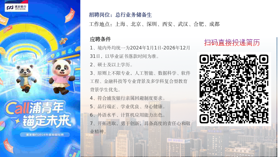#浦发银行2026年校园招聘来咯