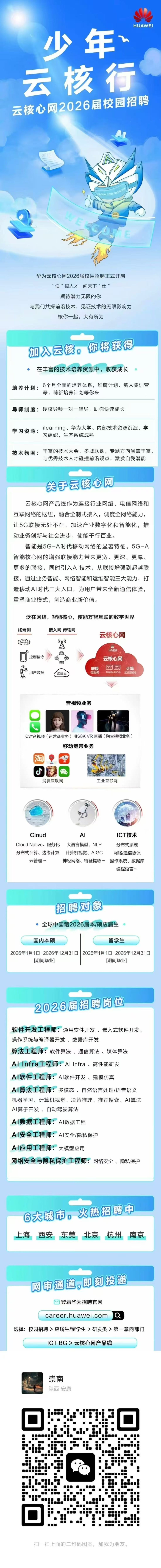 华为云核心网2026届招聘(内推部门直招底下是主管的微信)