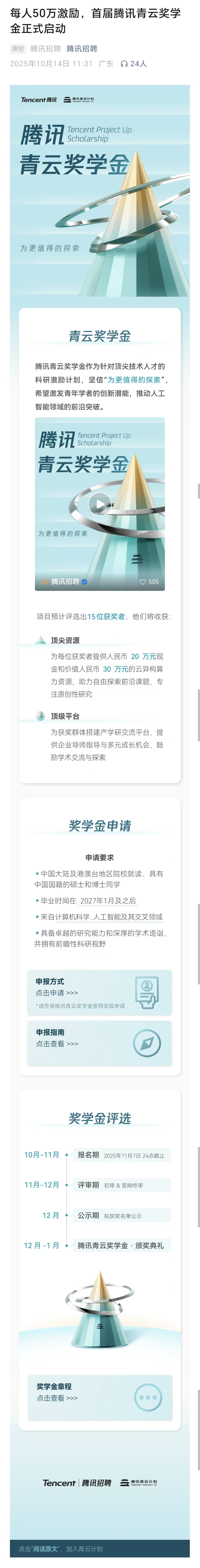 首届腾讯青云奖学金正式启动
