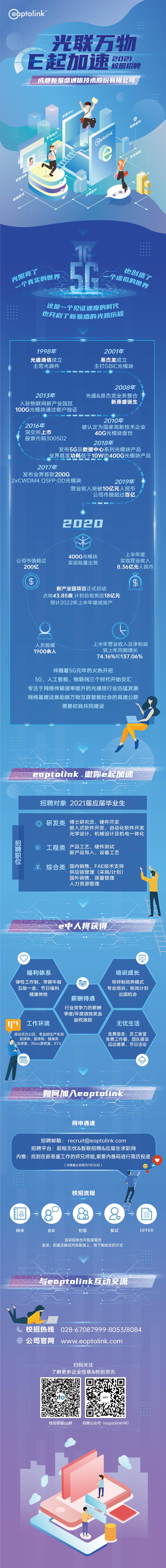 【发展展望】随着5G建设的大规模铺开及数据中心市场的迅猛发展,将会给光模块行业带来海量的市场需求。公司在巨大的市场机遇和竞争浪潮里,持续保持业绩高增长,2020年上半年营业收入及净利润较上年同期增长74.16%和137.06%。同时公司新产业园区项目---“一座极具设计感的工业生活综合体”已正式启动,占地43.85亩,计划总投资近18亿元,预计2022年上半年建成投产。我们欢迎更多年轻的小伙伴加入我们,与我们携手相伴、砥砺奋进、勇立潮头,共同构建万物联接的新未来。