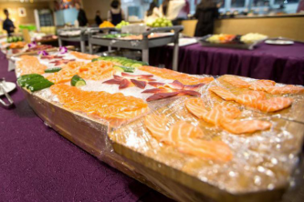 6. 公司星级餐厅提供专业膳食搭配的自助三餐,每周及节日均有美食节。