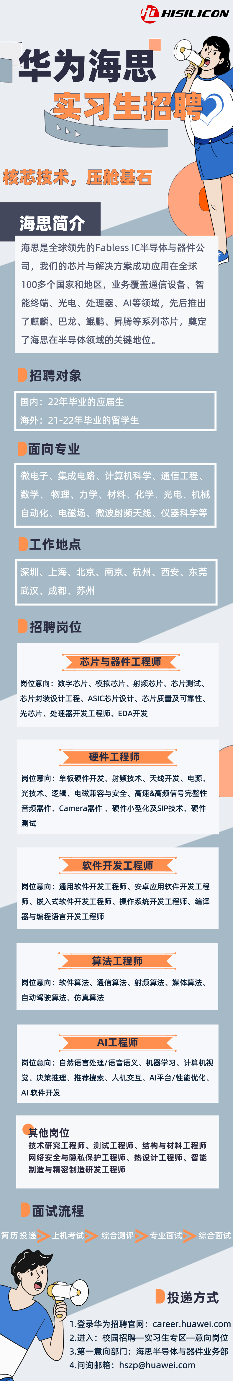 华文海思实习生招聘请联系