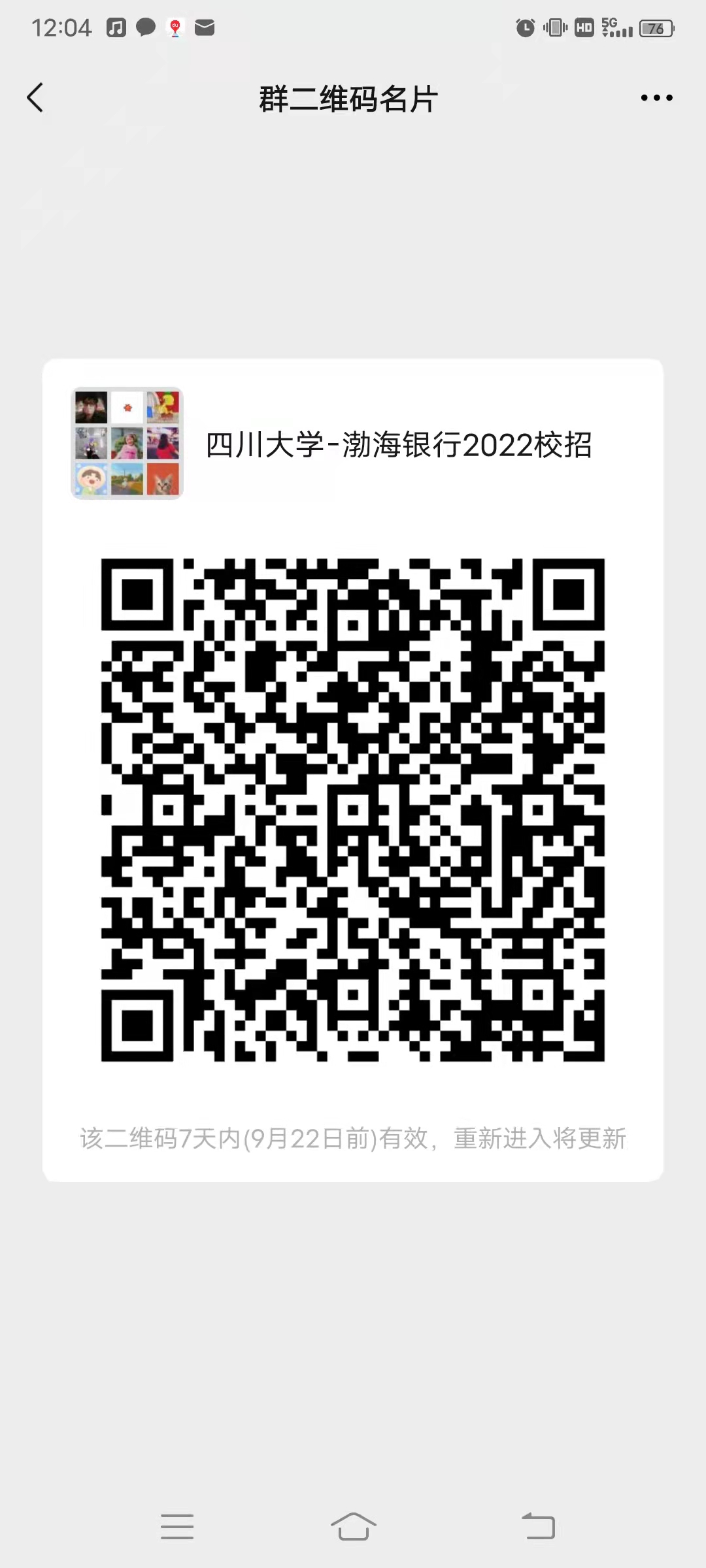 渤海银行2022校园招聘宣讲会——四川大学站(详见附件)【宣讲时间】9月16日12:20【宣讲地点】望江校区就业指导中心212【招聘岗位】1、总行管理培训生:2、总行信息科技部培训生:软件研发岗(工作地点:天津、北京、深圳)大数据技术岗(工作地点:天津、北京、深圳)技术管理岗(工作地点:天津、北京、深圳)系统运行岗(工作地点:天津)3、各分行培训生【网申地址】//2022.yingjiesheng.com/bhyh/