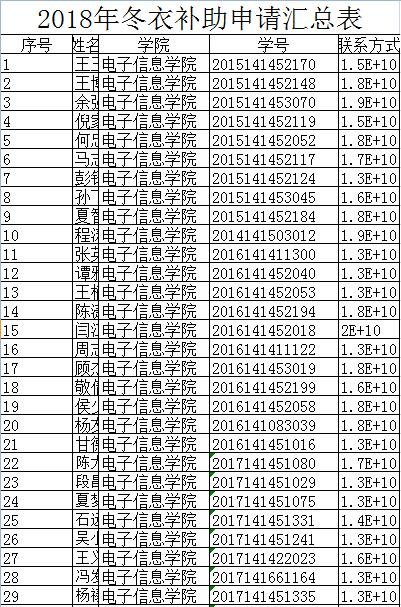 经过同学们自愿申请,8bo即时比分 评议小组评议,现将2018年度8bo即时比分 冬衣补助推荐名单公示如下(考虑安全问题,公示名单隐去部分姓名和联系方式):