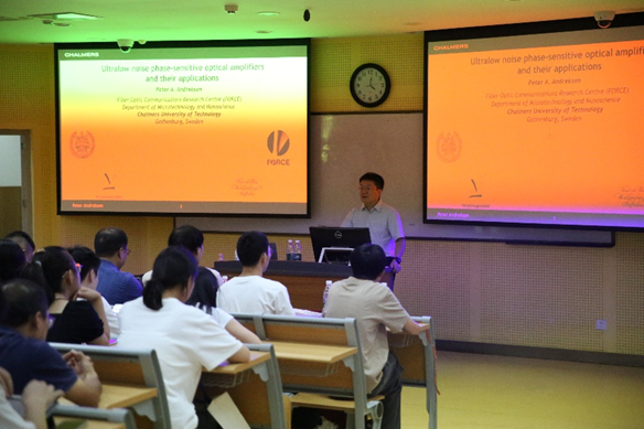 图3 Peter Avo Andrekson教授分享“超低噪声相位敏感光放大器”相关研究