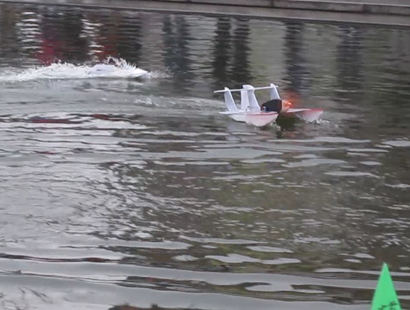 下午2点30分,设计评比结束后,比赛进入了现场演示的高潮阶段。29件作品在选手们得精心操控下,在江安校区景观水渠进行了精彩的表演。一艘艘独具匠心的船模在激昂的马达声中灵动游曳、急速穿行,水渠上浪花翻飞,现场观众的喝彩声一浪盖过一浪。至下午4点30分,比赛结束。随后,部分作品进行了现场自由表演,赢得了观众的阵阵掌声,此次大赛取得了良好的效果,获得了圆满成功。