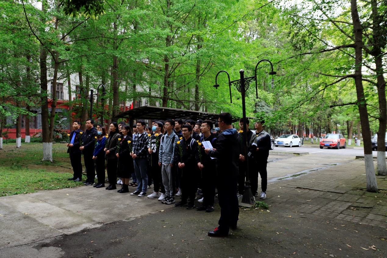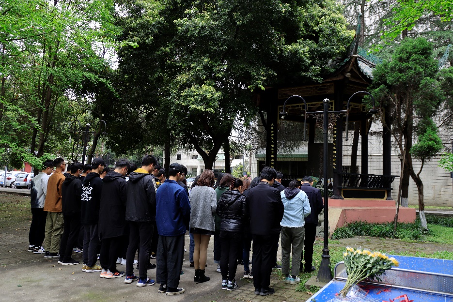 随后,老师和同学们在纪念碑前行鞠躬礼、敬献鲜花,围绕纪念碑一周,瞻仰纪念碑上川大烈士的英名。