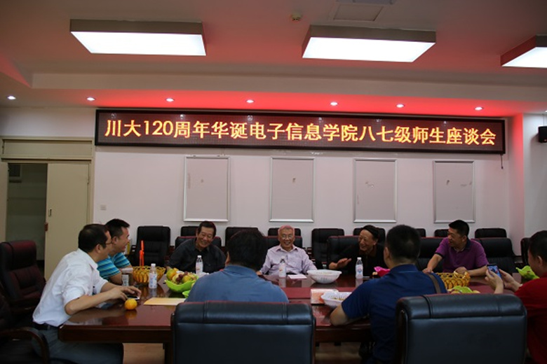 的学生在电子信息和光电行业有着一定的影响力。接着,87级的校友现场向他们的老师表达了感谢之情,未能到场的校友也通过到场的校友来感谢老师们的教育之恩并祝愿四川大学越走越远,不断书写新的篇章。最后,老师们与在场的各位学生们分享了他们多年来的人生经验与感悟,并提出川大是一个品牌,是一个由一届届学生和老师努力奋斗而造就的一个品牌,希望学生门珍惜并将川大这个品牌发扬光大,也祝愿学生们的发展越来越好。