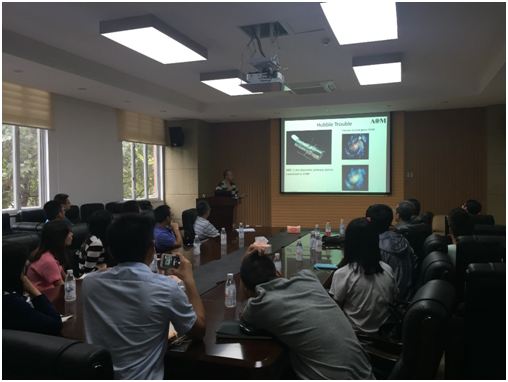 在报告会上,Dr. Zhao结合自身的实践经验和研究成果,首先向我们介绍了计算全息CGH的构成、优点和应用,指出CGH现已成为检测非球面镜的一种标准,并且具备大自由度、高精度和使用便捷的有点。接着Dr. Zhao向我们介绍了全息技术的由来以及计算全息技术的产生过程,并结合自身在美国亚利桑那Steward天文台天文望远镜(GMT)的具体制造和检测经历,展示了其设计的CGH在其中发挥的重要作用。最后,Dr. Zhao简述了目前全球CGH的研究现状,并且展望了CGH的未来发展方向。