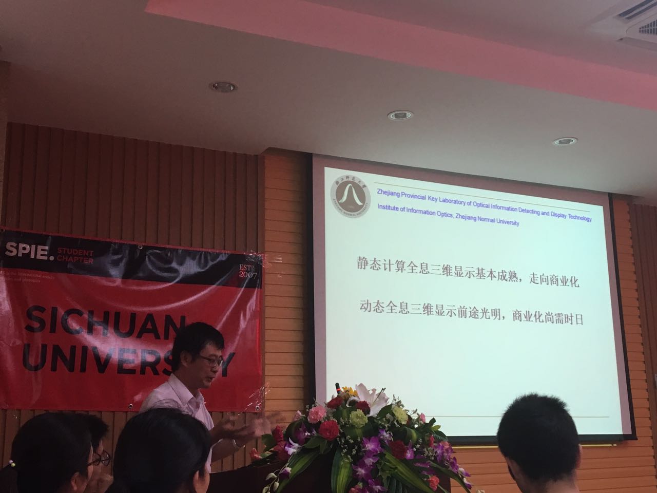 师生带来一场题为“全息三维显示—一种基于波前再现的真三维显示技术”的学术报告。此次报告会为四川大学120周年校庆学术讲座,报告会由张启灿教授主持。