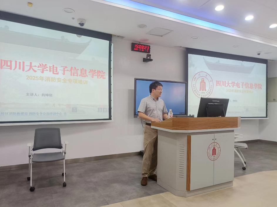 在武侯区消防救援局的支持下,于2025年6月25日下午在基础教学楼C座103开展了消防安全专项培训。此次培训由卿粼波副院长主持,特地邀请武侯区消防救援局肖坤琰警官来做安全培训。本次培训获得大量师生支持并吸引众多师生参与。
