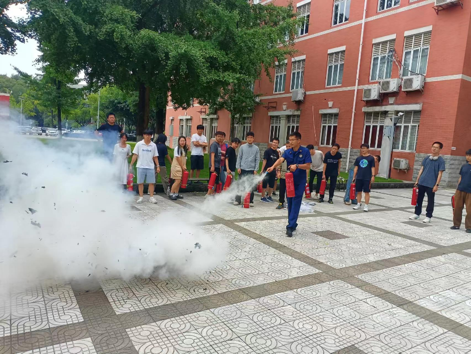 老师的支持下,肖坤琰又带领师生在基础教学楼A座楼下开展了明火扑救实战演练。肖坤琰展示了干粉灭火器的正确使用方法,随后与会师生亲自操作灭火器,加深了对灭火过程的记忆。