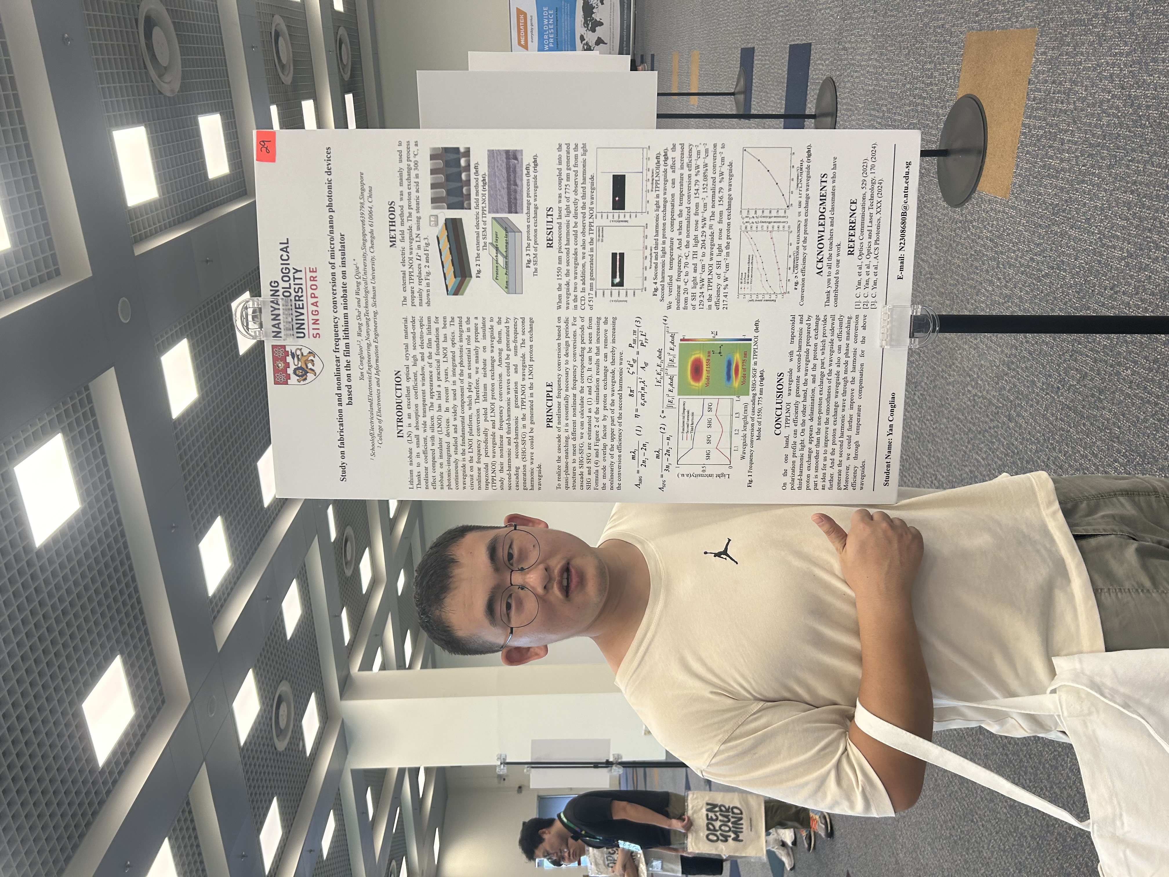 在南洋理工大学期间,我的研究方向得到了进一步的深化和拓展。在王岐捷教授的指导下,我接触到了更多非线性光学领域的前沿课题,特别是在片上中红外非线性的研究。这些课题不仅与我在四川大学的研究内容紧密相关,而且拓展了我的研究视野,使我对非线性光学有了更全面和深入的理解。