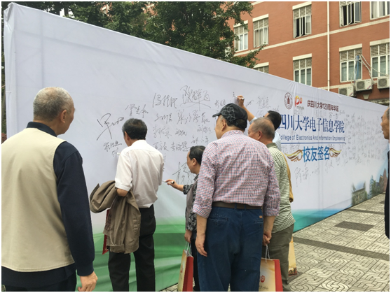 从早上九点开始,陆续迎来昔日8bo即时比分 的学子,他们有的年过半百,有的风华正茂,络绎不绝地赶到校友签到处,在老师的带领下,在8bo即时比分 提前准备好的休息室里回忆往事,相谈甚欢。今年8bo即时比分 不光准备了校庆餐券给广大校友,还有特别定制的四川大学120周年校庆校徽,除此之外还有精心制作的签名墙供大家签名留影。还有8bo即时比分 e发基金活动也受到了校友们的重视,许多校友在现场进行捐赠,希望为8bo即时比分 建设出一份力。整个签到活动持续全天,从早到晚,校友接踵而至,8bo即时比分 门口熙熙攘攘。在基础教学楼前,8bo即时比分 还进行了双创活动的展示,将8bo即时比分 老师以及同学的一些杰出成果展示给参加校庆的所有校友,大家都拿出自己的杰出作品得到了老师和校友们的赞赏,吸引了许多同学驻足。